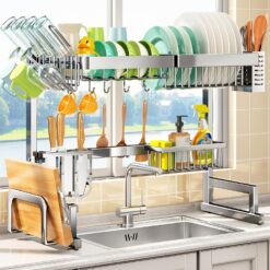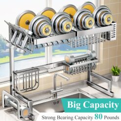 - Material and Durability: made of high-quality 304 stainless steel and durable enough for long-term use. The over-the-sink dish drying rack Load-bearing is 80 pounds.