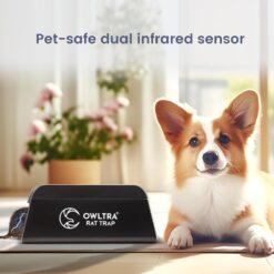 - Pet-safe Dual Infrared Sensor – The chamber is designed with two infrared sensors, one at the entrance and one at the back. Owltra only activates when it detects a rodent inside the trap—preventing false zaps while protecting children and small pets.