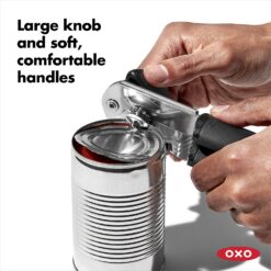 - Large, comfortable handles take the pain out of opening cans.