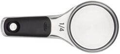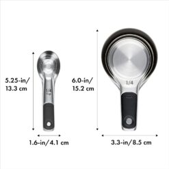 The OXO Good Grips Stainless Steel Measuring Cups and Spoon Set is an elegant yet functional measuring solution. The unique magnetic feature allows you to easily remove one Cup or Spoon at a time. This feature also keeps the Cups and Spoons neatly stacked together for storage. The sturdy, Stainless Steel Measuring Cups and Spoons are designed to make leveling ingredients easy for greater accuracy. The soft, comfortable, non-slip handles feature permanent, etched measurement markings. Set includes ¼ tsp, ½ tsp, 1 tsp and 1 T Spoons, ¼ Cup, 1/3 Cup, ½ Cup and 1 Cup Measuring Cups.