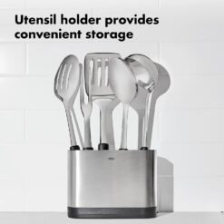 - Stainless Steel Utensil Holder provides convenient, sleek countertop storage