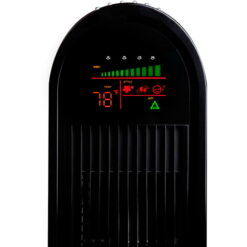 - Defines the latest in stylistic innovation with a sophisticated space-saving design that enhances room décor, and a multi-colored LCD that displays all fan functions and the room temperature.