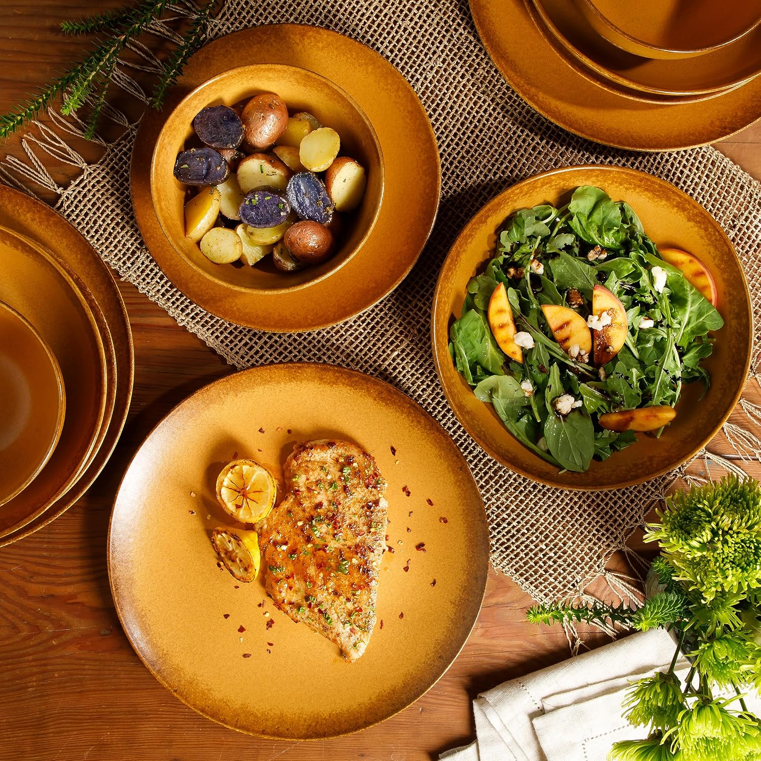 - STONEWARE CRAFTSMANSHIP: A mix of sustainable clays shaped and placed under high firing temperature to produce a thoughtfully-crafted dinnerware set with form and function.