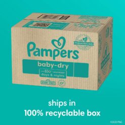 A good night’s sleep starts with a great diaper, and Pampers Baby-Dry diapers give you and your baby up to 100% leakproof nights and happy mornings. Made to protect your baby’s delicate skin, our exclusive LockAway Channels absorb wetness and lock it safely away, while our protective Dri-Weave Liner helps keep skin healthy. Plus, our Baby-Dry Diapers are hypoallergenic and completely free of parabens and latex.* These are just a few of the many reasons Pampers is the #1 pediatrician recommended diaper brand—and your baby’s best bet for comfy protection. Pampers also keep messes to a minimum. To help contain leaks and prevent blowouts, our Baby-Dry diapers feature all-around stretchy sides and large tape fasteners for a secure and comfy fit. Plus, they come equipped with our Dual Leak-Guard Barriers that are specially designed to protect around the legs, where leaks tend to happen most. And when your baby is due for a diaper change, our handy Wetness Indicator lets you know. No need for guesswork. Use Baby-Dry diapers with our Pampers Sensitive Wipes to help keep your baby’s skin healthy and prevent irritation. New & improved! Packaging and prints may vary. Ships in 100% recyclable packaging. *Natural Rubber