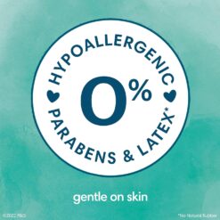 - Hypoallergenic and free of elemental chlorine, fragrance, parabens, and latex* (*Natural rubber)