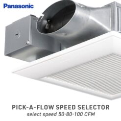 The Panasonic FV-0510VSC1 WhisperValue DC Ventilation Fan features a condensation sensor that helps control bathroom condensation and remove humidity. It features Panasonic’s revolutionary ECM motor with SmartFlow optimum CFM technology and incorporates a Pick-A-Flow airflow selector switch that provides you with the flexibility and control to select your required airflow (50-80-100 CFM). This extremely thin profile ventilation fan is UL listed for ceiling or wall mount and its unique L-shaped bracket design provides strong support and makes for easy installation. Energy Star certified and engineered to comply with Energy Star 4.0 requirements for increased efficiency (CFM/Watt), ensuring low cost and energy-efficient operation.