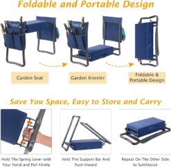 Patented Garden Kneeler and Seat Heavy Duty, Upgraded Garden Bench with Thicker Wider Soft Detachable Kneeling Pad, with 2 Tool Store Pouches, Nice for Mother Father Gardeners