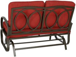 Patio Swing Glider Bench Outdoor Cushioed 2 Person Rocking Chair Garden Loveseat, Brick Red