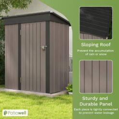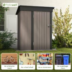 Patiowell PAMS53 5 ft. W x 3 ft. D Outdoor Storage Metal Shed with Sloping Roof and Lockable Door (14.5 sq. ft.)