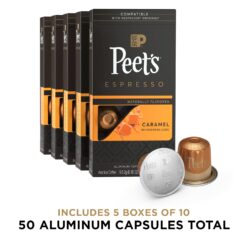 - Contains five (5) Boxes of 10 Peet’s Caramel Espresso Capsules