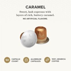 Peet’s Coffee, Dark Roast Espresso Capsules Compatible with Nespresso Original Machine, Caramel 50 Count (5 Boxes of 10 Espresso Pods)