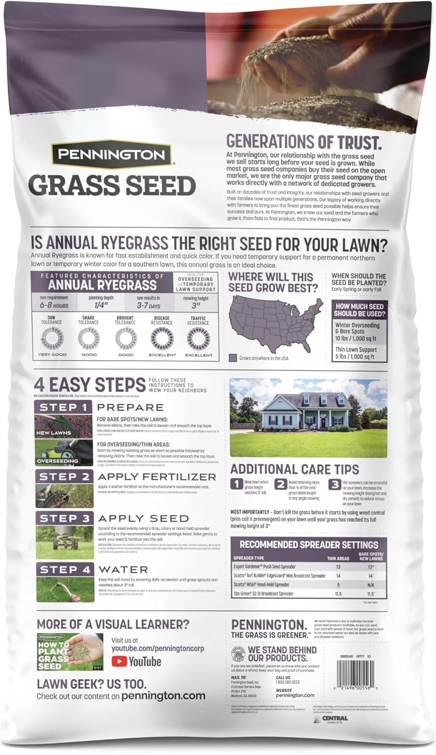 Pennington Annual Ryegrass Retail Bag to Overseed Warm Season Grasses, 25 lb