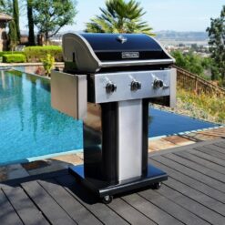 Our Permasteel 3 Burner Gas Grill with Folding Side Shelves in Black is ideal for small spaces and can cook for medium size gathering with a 512 sq. in. cooking area. It’s built with heavy-duty construction with a powerful 30,000 BTU. It has 2 foldable side shelves for prepping your food and tool hooks to hang your BBQ tools while also providing easy mobility with 4 caster wheels.