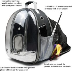 Pet Fit For Life Pet Bubble Backpack Carrier for Traveling with Cats Puppies and Small Animals Airline Approved – Includes Bonus Cat Feather Toy