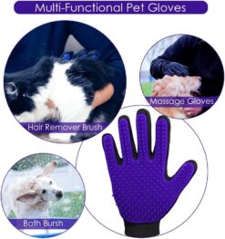 Pet Grooming Glove Purple – Gentle Deshedding Brush Glove – Efficient Pet Hair Remover Mitt – Enhanced Five Finger Design – Perfect for Dog and Cat with Long & Short Fur 1 Pair