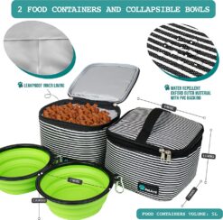 - Comes with 2 food container bags and 2 collapsible bowls.
