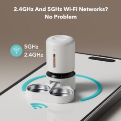 | Specific Uses for Product | Pet daily feeding for two pets, Stainless steel bowl design to prevent cat chin acne, Helping pets maintain a healthy diet, Suitable for small cats and dogs, APP Control can connect to 5GHz and 2.4GHz WiFi network |