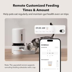 - Convenient APP Control: WiFi automatic cat feeder can connect to 5GHz and 2.4GHz WiFi network. Program and monitor your pet’s meals anywhere anytime through the PETLIBRO App on your iOS or Android smartphone. You can set up to 10 meals per day with 1-50 portions per meal.