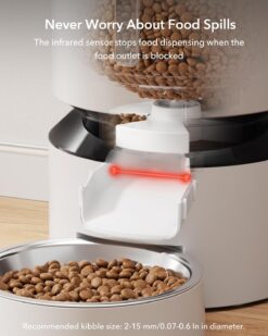 - Smart Infrared Detection: The built-in infrared detection automatically suspend the cat feeder when an obstruction is detected. Keep your feeder in good condition and your pets safe.