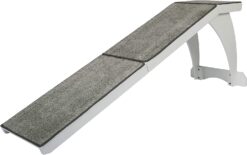PetSafe CozyUp Wooden Cat & Dog Ramp – Durable Frame Supports up to 120lb – Furniture Grade Wood Pet Ramp with Cherry or White Finish – High-Traction Carpet Surface – Dog Bed Ramp for Older Pets
