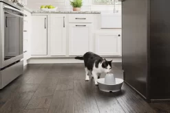 With fresh, filtered water, there’s no need to lead your pet to water; she’s already lapping it up! The PetSafe Creekside Ceramic Dog & Cat Fountain was designed to help increase dogs’ and cats’ drive to drink by mirroring a natural water source instead of a stagnant bowl. It holds 60-oz of flowing water, encouraging your furry friend to drink more. The whisper-quiet design causes the water to softly bubble over the beautiful ceramic tower, making it especially paw-fect for timid dogs or cats. This fountain also comes with a pump, carbon filter and a foam filter to help remove pet hair, saliva and unpleasant tastes from the water. And it’s made from hygienic, scratch-resistant materials that are also 100% free from heavy metals. When it comes time to clean the fountain, simply clean the pump by hand and place the ceramic tower and base on the top shelf of your dishwasher!