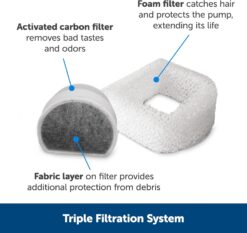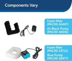 - COMPATIBLE FILTERS AND PUMP: Fountain uses Carbon Filter #6 (PAC00-13906), Foam Filter #5 (PAC00-13711) and Replacement Pump (PAC00-16977)