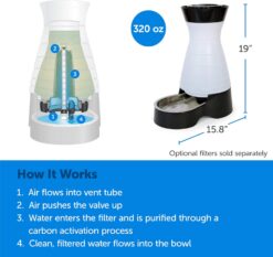 PetSafe Healthy Pet Water Station- Large, 320 oz Capacity- Gravity Cat & Dog Waterer- Removable Stainless Steel Bowl Resists Corrosion & Stands Up to Frequent Use- Easy to Fill- Filter Compatible