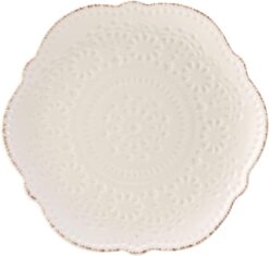 - Beautiful details and design: Simple, versatile cream serves as the backdrop for intricate dimpled patterns that circle each piece. The elegant look is enhanced with a hint of red along the scalloped edges.No Band