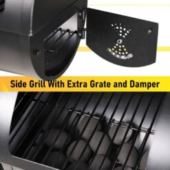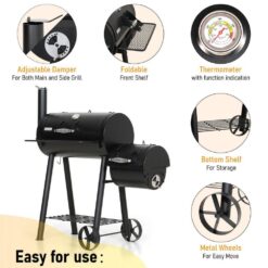 - Heavy-duty charcoal grill and smoker made of durable steel