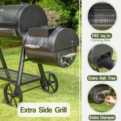 PHI VILLA THD-E02GR016 Extra Large Heavy-Duty Offset Charcoal Smoker in Black