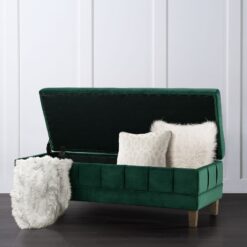 Picket House Furnishings Jude Tufted Velvet Bedroom Bench, Evergreen