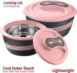 Pinnacle Insulated Casserole Dish with Lid 3 pc. Set 2.6/2/1 qt. Hot Pot Food Warmer/Cooler –Thermal Soup/Salad Serving Bowl- Stainless Steel Hot Food Container–Best Gift Set for Moms –Holidays Pink