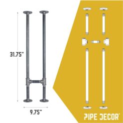 - Assembled legs are 31.75 in. high; included are (4) 3/4 in. x 6-inch pipes, (4) 3/4 in. x 24-inch pipes, (2) 3/4 in. x 4-inch pipes, (8) 3/4-in. round flanges, (4) 3/4 in. Tees, (16) screws