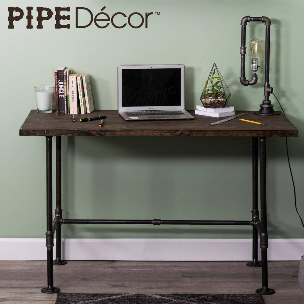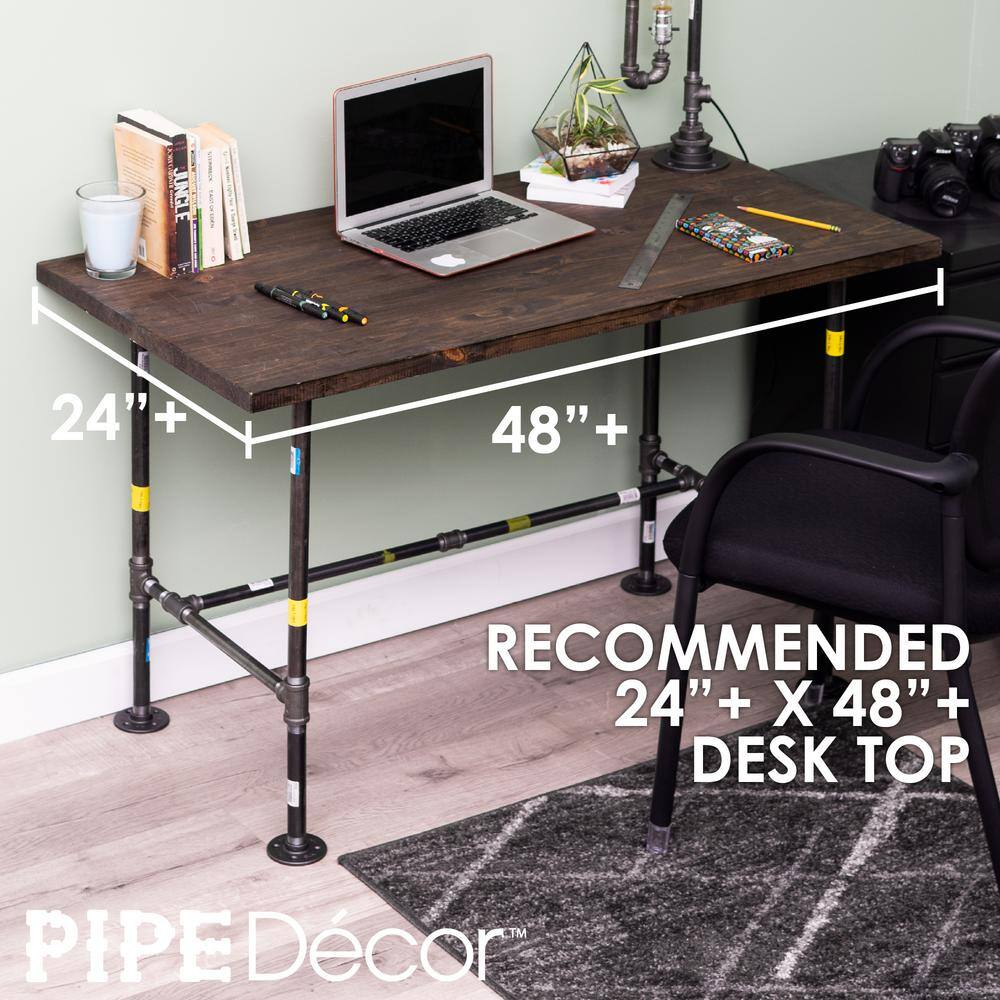The “H” desk is Pipe Decor’s standard desk design. Easy to assemble, you will have your home office up and running in no time. Don’t let the simple design fool you, our H desk will add the industrial look and feel to your office that you’ve been looking for – pop your feet up on the crossbar and get to work. Steel pipe, when paired with wood, fits in nicely with French and Industrial Farmhouse, Mid-Century Modern, DIY, and Vintage design. This kit uses a combination of 3/4 in. and 1/2 in. pipe and comes with all necessary fittings and flanges needed for assembly. Screws and a set of step-by-step instructions are also included for your convenience. The wood desktop is not included. Choose your own desktop to create a look that is uniquely yours. Glass tops are not recommended as they cannot be attached to the base.