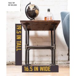 Pipe Decor’s classic “H” end table is easy to assemble and offers vintage industrial design with a clean modern flair. Add a touch of hard steel at the arm of a soft sofa or strategically place the H end table in any room to give your decor a bit of industrial chic! Authentic steel pipe, when paired with wood, fits in nicely with French and Industrial Farmhouse, Mid-Century Modern, DIY, Vintage and Rustic design. This kit uses a combination of 1/2 in. pipe and comes with all necessary fittings and flanges needed for assembly. Screws and a set of step-by-step instructions are also included for your convenience. The wood tabletop pictured is not included. Choose your own tabletop to create a look that is uniquely yours. Glass tops are not recommended as they cannot be attached to the base.