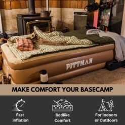 Pittman Outdoors Comfort Series Indoor Air Mattress with Built-in Electrical Air Pump, Twin 18-Inches Tall, Tan