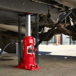 Lift trucks, farm vehicles, and more with this 12 ton air/hydraulic bottle jack. This industrial jack lifts up to 24,000 lb. with little effort. The 48 in. long air hose provides the option to power this hydraulic jack with air.