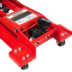 This PITTSBURGH® Low-Lift Transmission Jack is easy to position and operate under most vehicles. The thrust bearings on the saddle bolt deliver smooth operation.