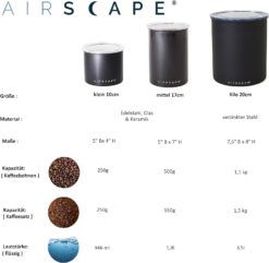 - EXTRA LARGE STORAGE – The “Kilo,” the largest of our Airscape canisters, stores up to 2.2 pounds (1.1 kg) of coffee beans; This giant container is designed for the larger volume food items and optimal countertop & pantry storage