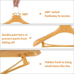 - 【EASY TO ASSEMBLE】: Plastic coat hangers 20 pack is independent, you will get 20 pieces of natural hanger, 20 pieces of bold cross bars, 20 pieces of silver round hooks and an installation instruction, just follow the instruction, very simple installation to harvest a heavy-duty support hanger, the plastic suit hangers with pant holder is suitable for a wide range of applications, ideal for suits, coats, shirts, jackets, pants, dresses, etc.