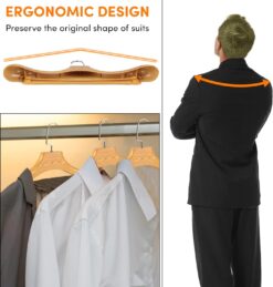 - 【UPGRADE EXTRA WIDE SHOULDER DESIGN】: The sweater hangers no shoulder bump prevent clothes from slipping, and the inward curved shoulder contour mimics the arc of a human shoulder, keeping your suit in its original shape without appearing any crease, the wide shoulder hangers design of the extra wide hangers not only provides ample support for your suit and evenly distributes the weight of the garment, but also preserves the collar and drape.