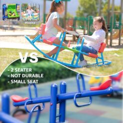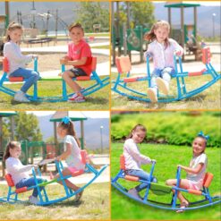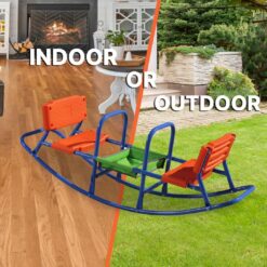 - Durable: The heavy-duty, powder coated steel frame can support up to 154 pounds or 77 pounds per child. With a rust-resistant finish and non-recycled plastic seats, this rocking chair seesaw will last your children through their early years!