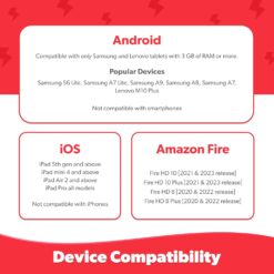 - DEVICE COMPATIBILITY: iOS – iPad 5th gen & above, iPad Air – all models, iPad Pro – all models, iPad Mini 2 & above | Android – Samsung & Amazon Fire Tablets as per specifications