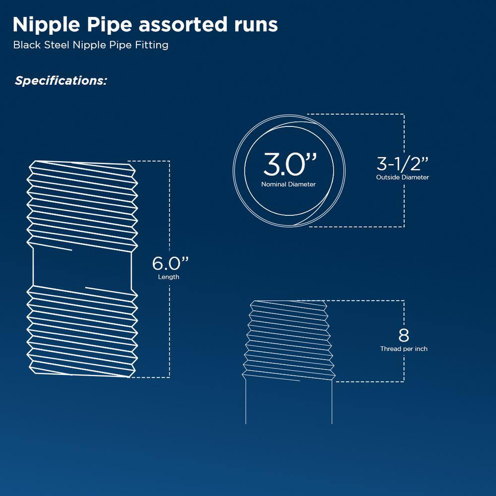 PLUMBFLEX 3060NPBL-10 Black Steel Pipe, 3 in. x 6 in. Nipple Fitting (Pack of 10)