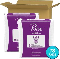- Poise Incontinence Pads: 78 postpartum and incontinence pads, 7 drop ultra absorbency, long length (78 pads total); HSA/FSA-eligible; packaging may vary