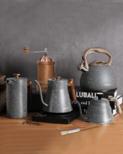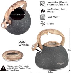 POLIVIAR Tea Kettle, 2.7 Quart Natural Stone Finish with Wood Pattern Handle Loud Whistle Food Grade Stainless Steel Teapot, Anti-Hot Handle and Anti-Rust, Suitable for All Heat Sources (JX2018-GR20)