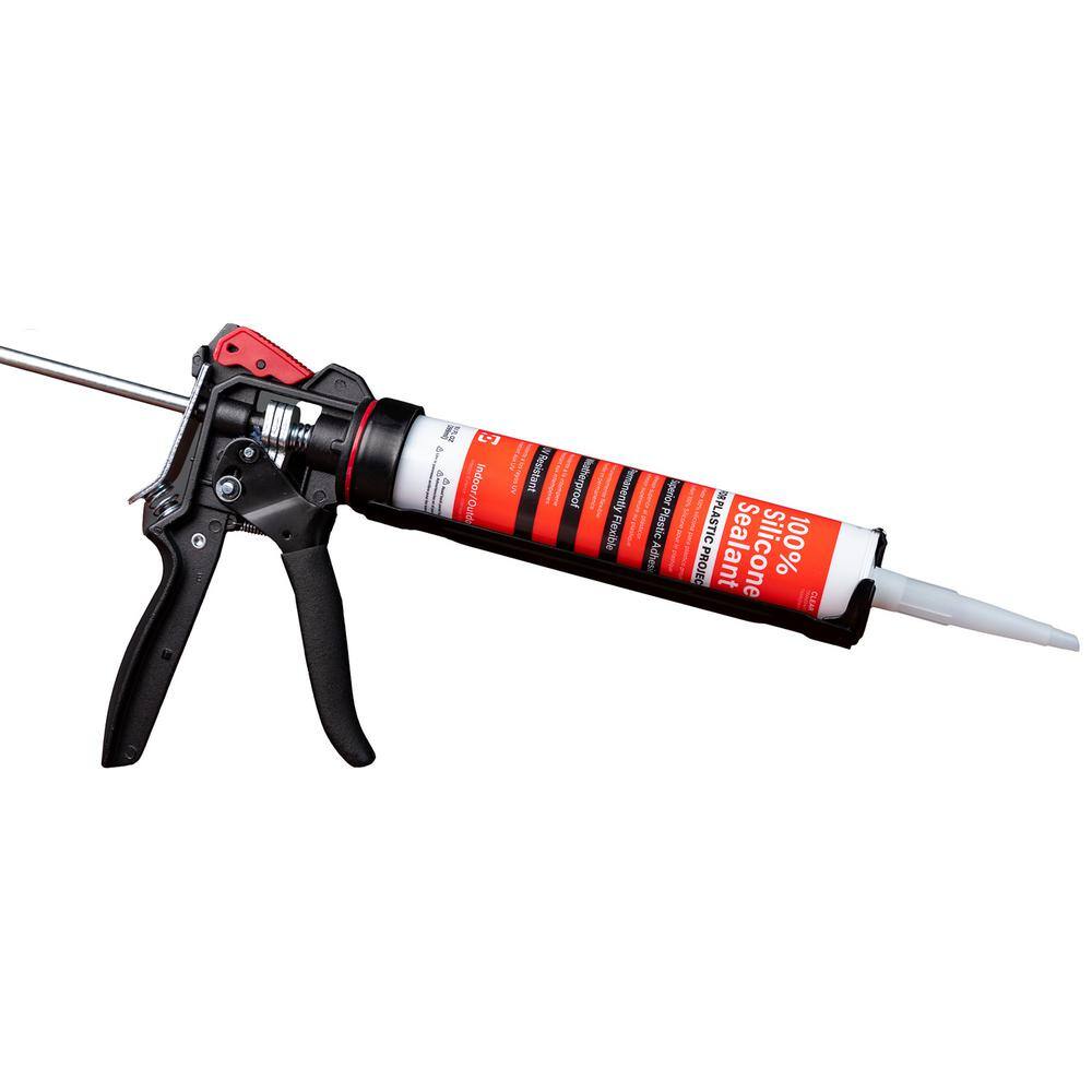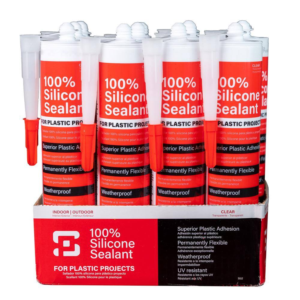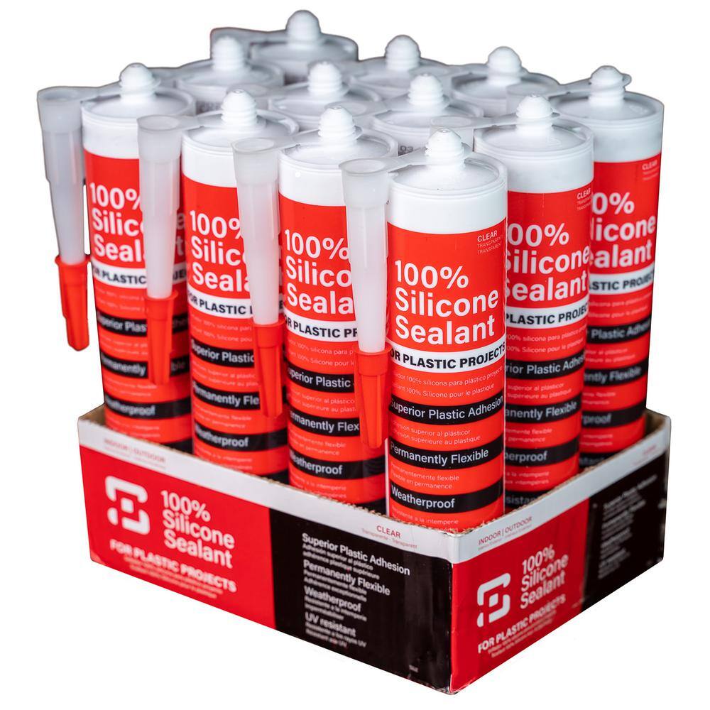 The 10 oz. Silicone Cartridge (12-Pack) is compatible with Lexan sheet and most other kinds of plastics. This adhesive needs to be tooled within 6 to 12 minutes after application due to its quick-setting formula. Perfect for adhering many different types of materials like plastic, metal and glass surfaces.