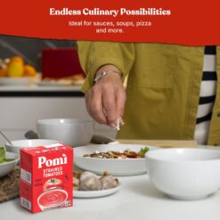 - READY TO USE FOR EASY MEAL PREP: Simply open the carton and add this rich, preservative-free puree to your soups, sauces, or smoothies, Pomì Organic Strained Tomatoes add convenience and flavor to your healthy meals—perfect for busy home cooks.