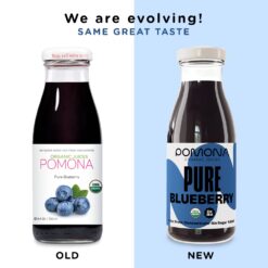 POMONA Organic Pure Blueberry Juice, Cold Pressed Organic Juice, Non-GMO, No Sugar Added, Not from Concentrate, Gluten Free, Kosher Certified, Preservative Free, 8.4 oz Bottles, Pack of 12