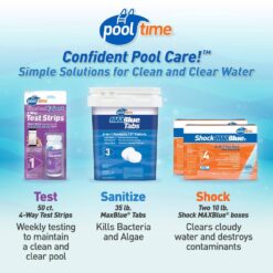 Pool Time 67035PTM 35 lb. MAXBlue Tablets Pool Chlorinating with Two 10 lb. MAXBlue Shock + 50 ct. Test Strips